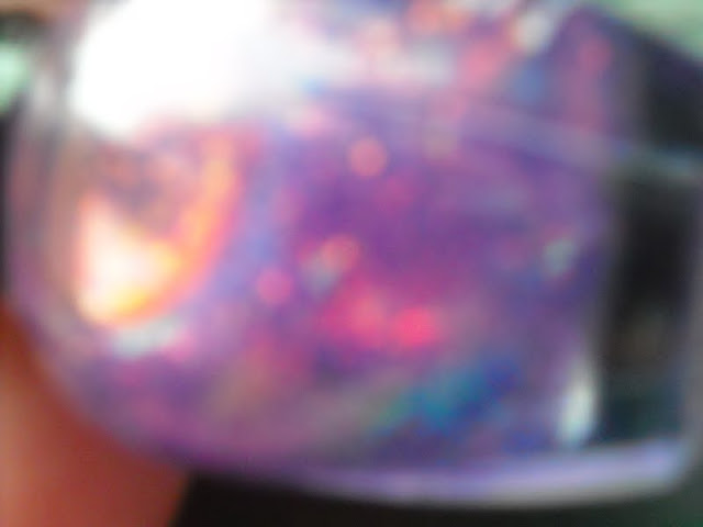 Anyway... here it is. Chunky (Purple) Holo (Purple) wherever the "Purple" goes. I have it layered over 2 coats of Nicole I'm A Beliber, which is the closest I had to the base color. My application of IaB sucks so please don't focus on that. I used 2 coats of the Kleancolor, no top coat. The formula is thick and the base is mostly clear, very very faintly tinted purple so you could layer it over most anything. The brush is like the OPI Pro Wide brush which I like. It had a pretty normal dry time. I'm not even going to try describe the colors so I'll let the million pictures do the talking.